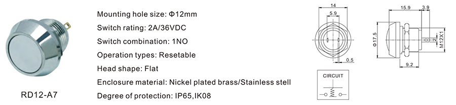 金屬開關(guān) | RD12-D2 | 36VDC | 2A | / | / | ≥100,000 CYCLES | 立即申請 | 下載 |