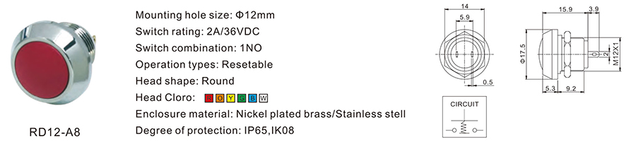 12MM金屬開關(guān)RD12-C2 金屬開關(guān) RD12-C2 36VDC 2A / / ≥100,000 CYCLES 立即申請(qǐng) 下載