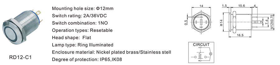 12MM金屬開(kāi)關(guān)RD12-C1