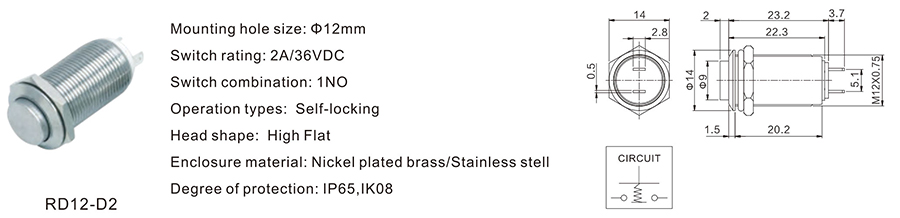 12MM金屬開關(guān)RD12-C2 金屬開關(guān) RD12-C2 36VDC 2A / / ≥100,000 CYCLES 立即申請(qǐng) 下載