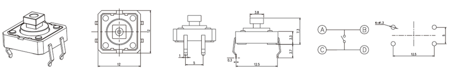 12x12mm輕觸開關(guān) | RTSP-2 | 12VDC | 50mA | 3±1 N | 0.3mm | ≥100,000 CYCLES | 立即申請 | 下載 |