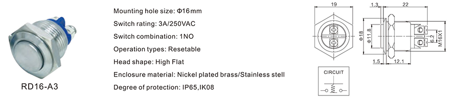 金屬開關(guān) | RD16-D2 | 36VDC | 2A | / | / | ≥100,000 CYCLES | 立即申請 | 下載 |
