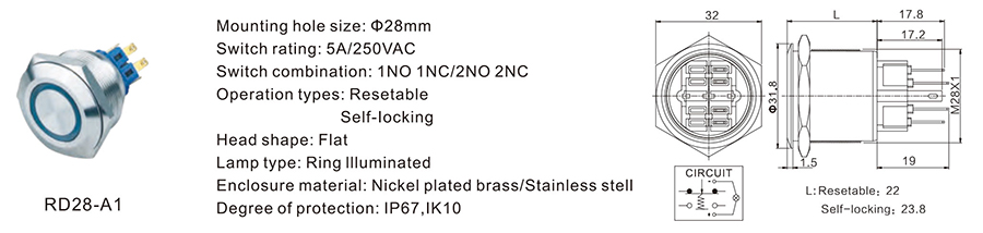 28MM金屬開關(guān)RD28-A1