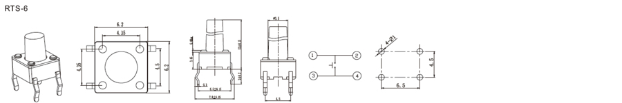 6.2*6.2mm輕觸開關(guān)RTS-6
