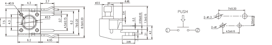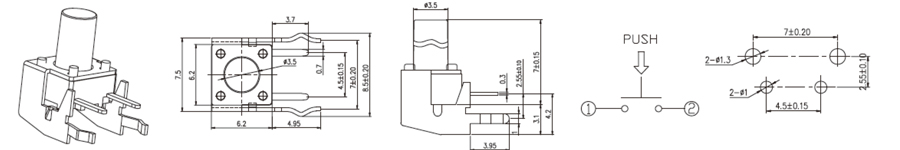 6x6mm輕觸開關(guān) | RTSA-6 | 12VDC | 50mA | 2±1 N | 0.3mm | ≥100,000 CYCLES | 立即申請 | 下載 |