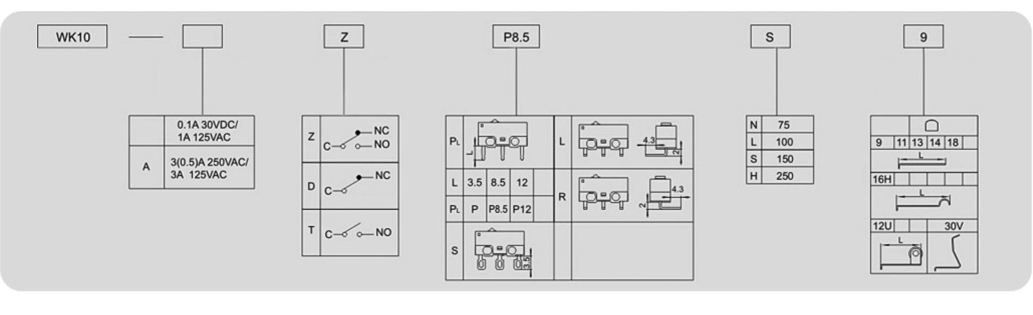 微動開關(guān)WK10-ZPS18 微動開關(guān) WK10-ZPS18 250VDC/125VDC/30VDC 3(0.5)A / / 1,000,000 cycles 立即申請 下載