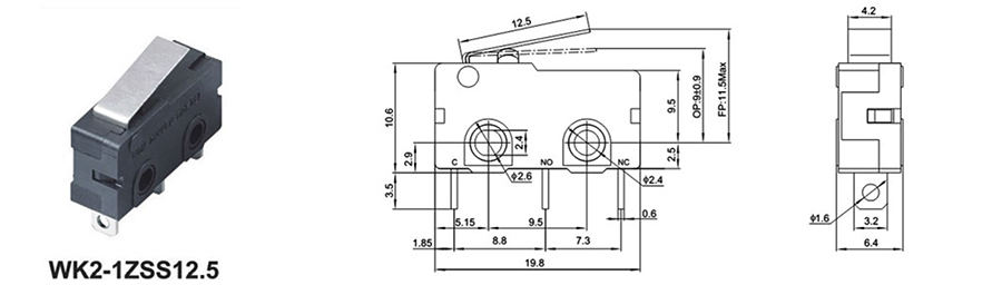 微動開關(guān)WK2-1ZSS19H 微動開關(guān) WK2-1ZSS19H 250VDC 5(2)A / / 1,000,000 cycles 立即申請 下載