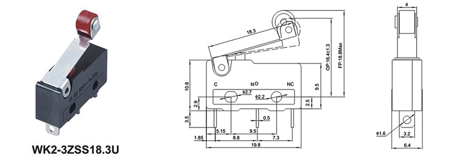 微動開關(guān)WK2-3ZSS18.3U 微動開關(guān) WK2-3ZSS18.3U 250VDC 5(2)A / / 1,000,000 cycles 立即申請 下載