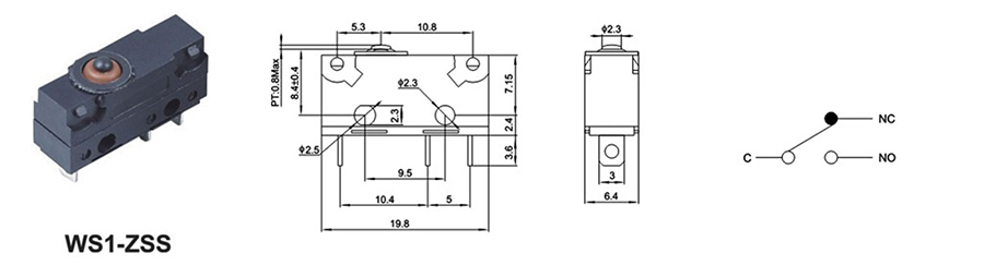 微動開關WS2-ZSS 微動開關 WS2-ZSS 250VDC 3A / / 1,000,000 cycles 立即申請 下載
