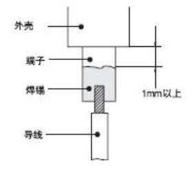 ●為防止焊錫流入開關(guān)內(nèi)部,端子被焊鍋覆蓋的部分和外殼面之間應(yīng)空開1mm以上。